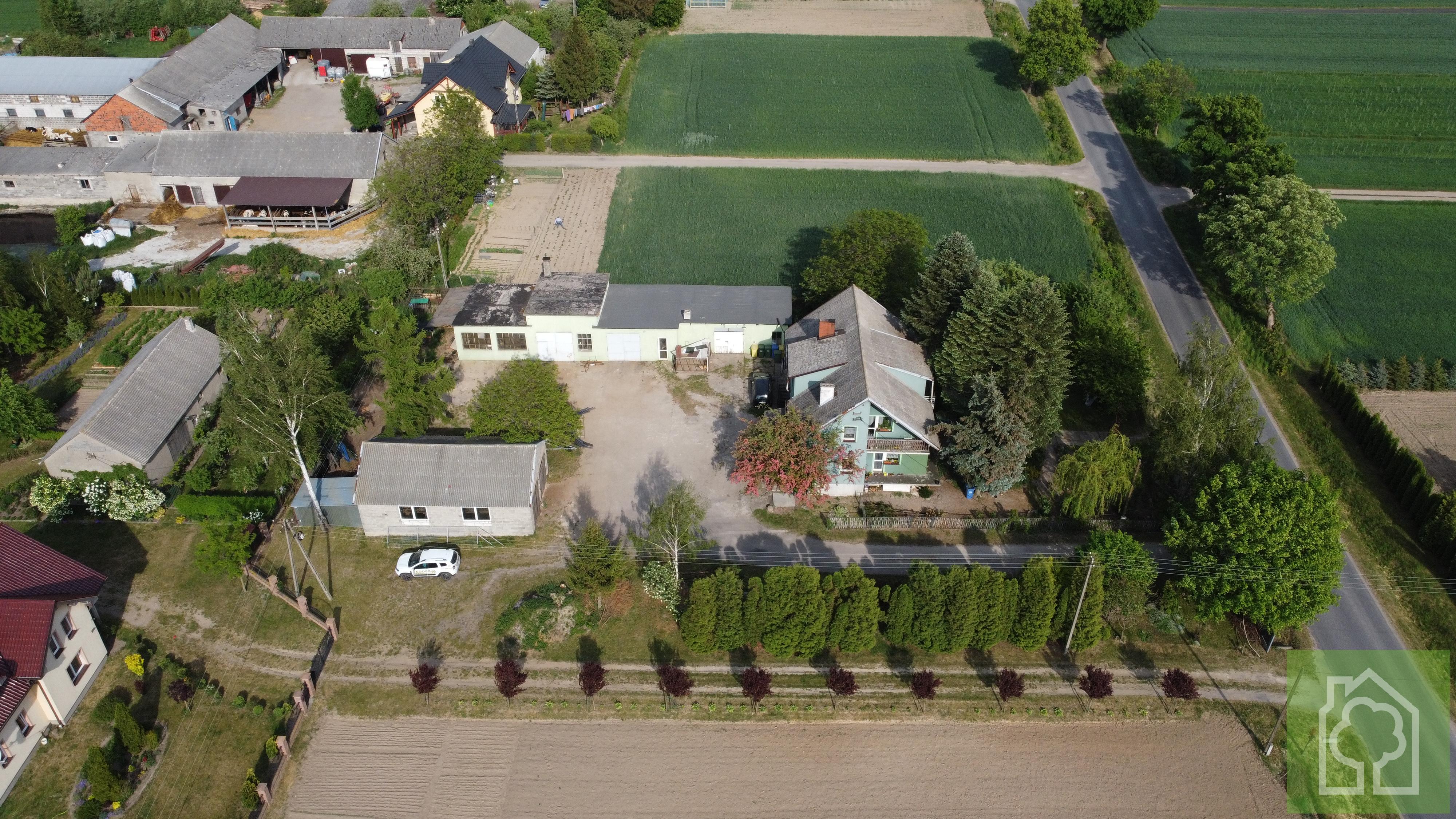 Na posesji znajduje się duży budynek garażowy o powierzchni ok. 200m2 z 3 stanowiskami, 2 kanały, pomieszczenie gospodarcze, WC. Garaż posiada ogrzewanie, bieżącą wodę, kanalizację. Idealnie nadaje się pod warsztat samochodowy lub podobną działalność.