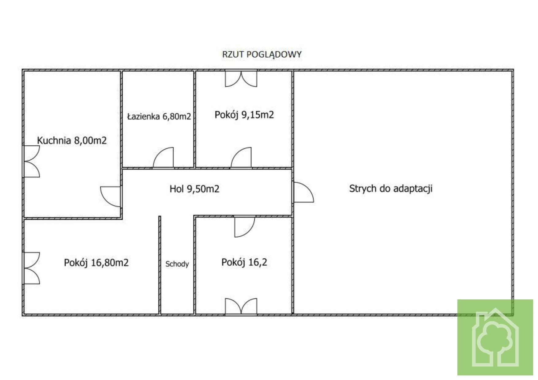 - pokoje 9,15m2, 16,50m2, 16,8m2 (duże, przestronne pokoje z oknami nie dachowymi)