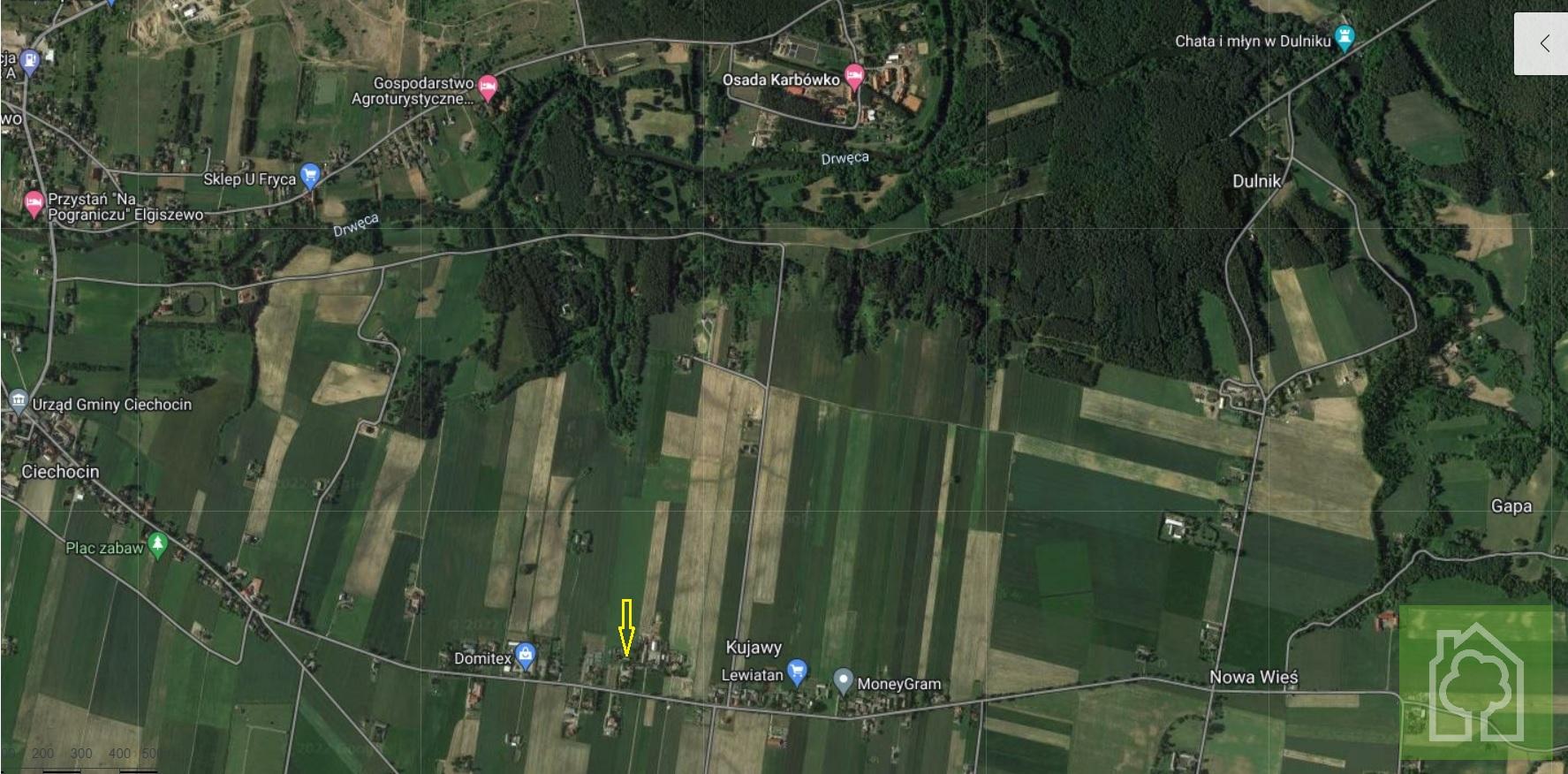 Działka znajduje się ok. 14km od Golub-Dobrzyń oraz 29 km od centrum Torunia.